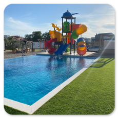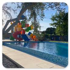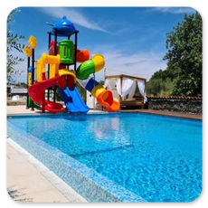 In unmittelbarer Nähe befindet sich der Kinderspielplatz mit Sandkasten und Trampolin, der bei den Kindern ebenso sehr beliebt ist.Das kleine und privat geführte Camp ist ideal für Ruheliebhaber. An dem großen Pool mit verschiedenen Wasserrutschen haben die Kinder Ihren Spaß. Es sind Sonnenliegen neben dem Pool vorhanden und dürfen von den Gästen kostenlos genutzt werden.